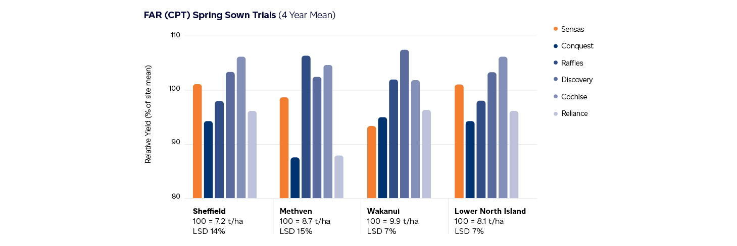 SENSAS is a French bread wheat from RAGT (formerly Serasem) in France and has been developed in New Zealand by PGG Wrightson Grain (PGW Grain). SENSAS wheat develops quicker than any other wheat cultivar on the market, making it the ideal choice for later spring plantings and plantings from late July where the availability of late season moisture is unreliable (e.g. limited or no irrigation).