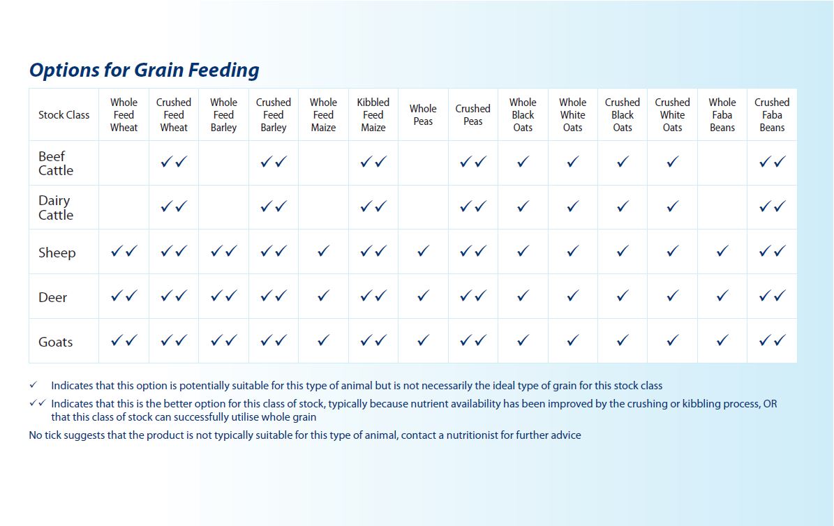When feeding grain to ruminant animals for the first time, or if unsure, talk to your Nutritionist for recommendations to suit your specific requirements.