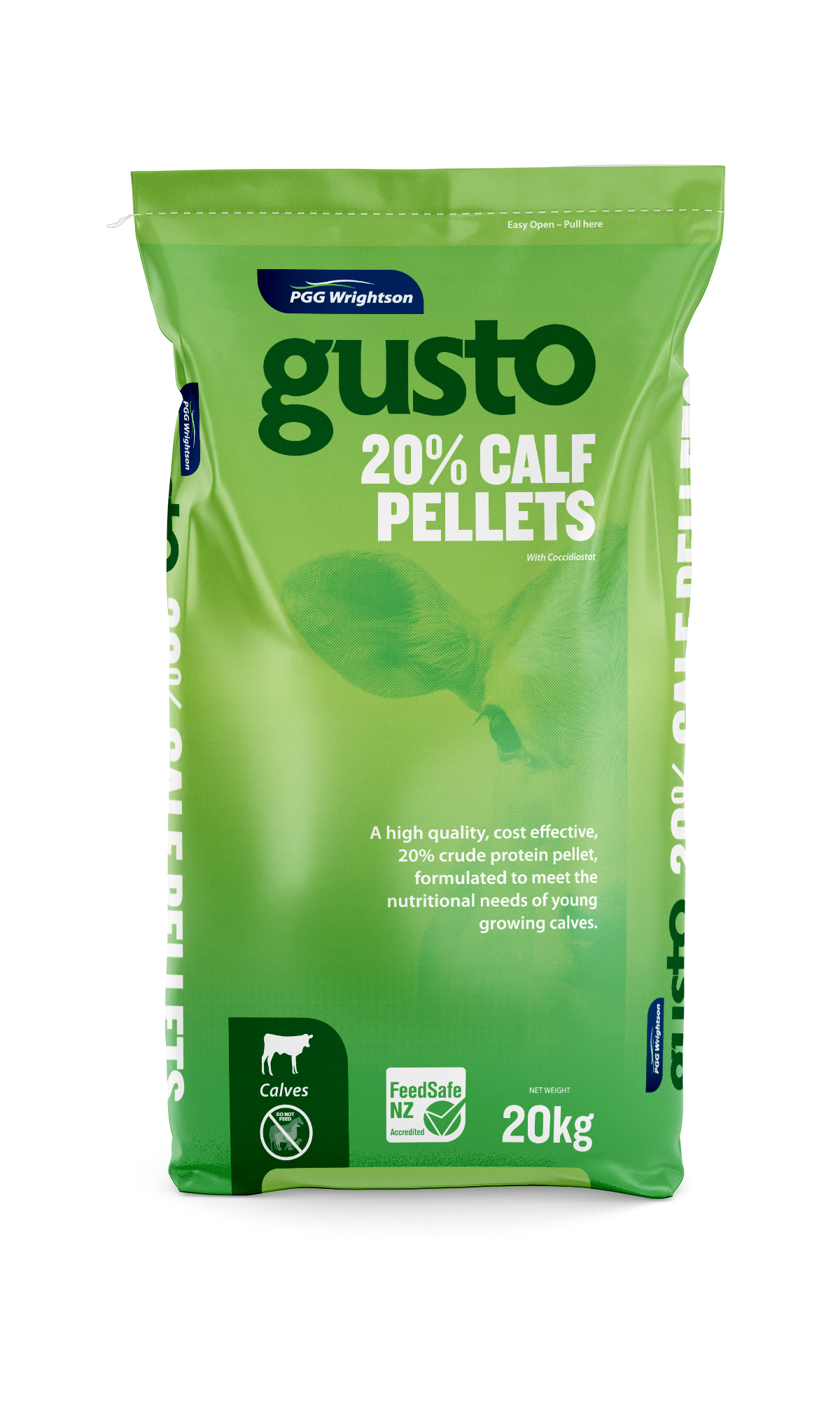 Download North Island PDF Shop Now at PGG WrightsonGusto 16% Calf Pellets delivers superior quality, nutritionally balanced meal catering for the energy, protein (16%), mineral and vitamin requirements of older calves, or calves/heifers heavier than 80-100kg liveweight, particularly through and after weaning.* South Island Only
